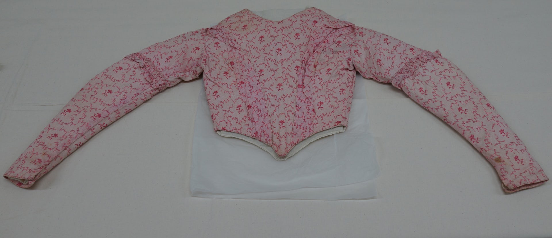 These outfits aren’t informal gowns intended for wearing indoors, and include everything from silk gowns to printed cotton bodices. The slits allowed the woman wearing the outfit to feed through them, often hiding them beneath fashionable features such as the trim on Mary Halpin’s 1860s gown, see below.