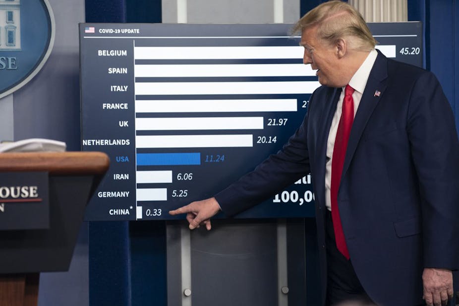 He seems to have finally settled on the use of “the invisible enemy,” which he has used more than 50 times from March through mid-April. This is part of his use of the war metaphor. Of course a pandemic is not war, and much has been much written about (here, here, or here), including on The Conversation (here, here and here).