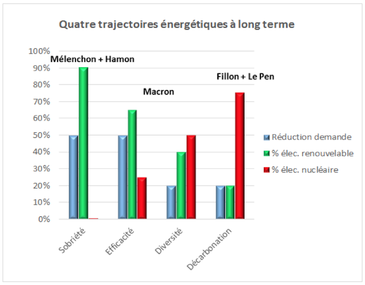 Ces points sont essentiels pour l’avenir de l’énergie en France car les stratégies qu’ils permettent de structurer supposent des trajectoires de long terme extrêmement différentes. Or ces problématiques ont déjà été discutées en 2013 lors du Débat national sur la transition énergétique. On peut donc y revenir afin d’analyser les stratégies des prétendants à l’Élysée.