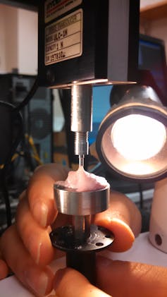 The plan was this: Poke the tongue tissue to determine softness, and spin the frog saliva between two plates to determine viscosity. Softness and viscosity are common metrics for comparing solid and fluid materials, respectively. Softness describes tongue deformation when a stretching force is applied, and viscosity describes saliva’s resistance to movement.