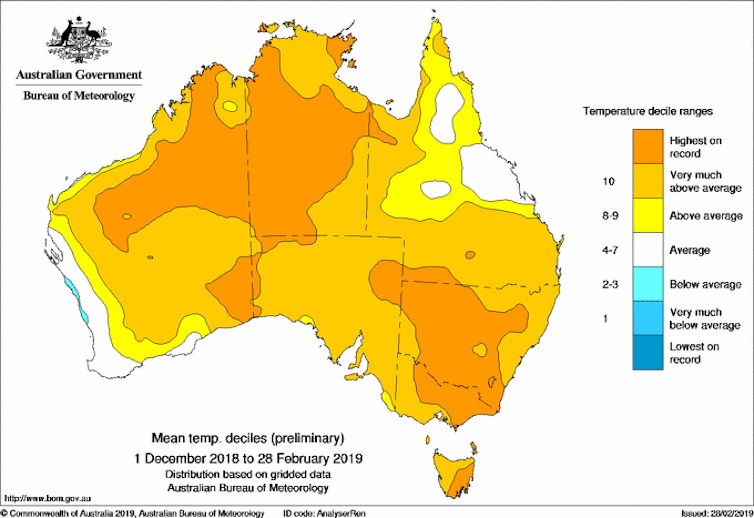 As the State of the Climate 2018 report outlines, Australia has warmed by just over 1°C since 1910, with most warming occurring since 1950. This warming means global and Australian climate variability sits on top of a higher average temperature, which explains why 2018-19 was warmer again.