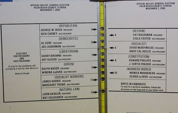 Then, on Election Day, the national media discovered that a “butterfly ballot,” a punch card ballot with a design that violated Florida state law, had confused thousands of voters in Palm Beach County.
