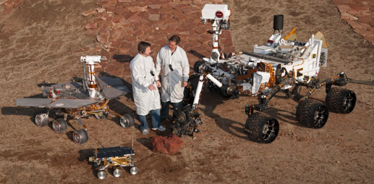 C'est également le cas de Curiosity, le plus imposant de tous les rovers déposés jusqu’à ce jour. Il explore depuis 2012 un cratère martien et, en ce début 2018, il est toujours actif malgré quelques problèmes techniques. Curiosity transporte une charge utile de 10 instruments provenant de coopérations internationales (les Français ont très fortement contribué à deux d’entre eux, ChemCam et SAM).