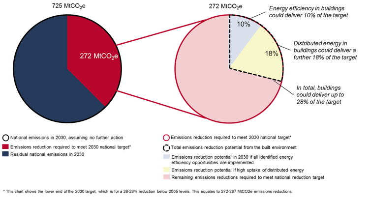We found that improving energy efficiency in buildings could deliver 10% of our emissions target. Distributed energy (primarily rooftop solar) could achieve an extra 18%.