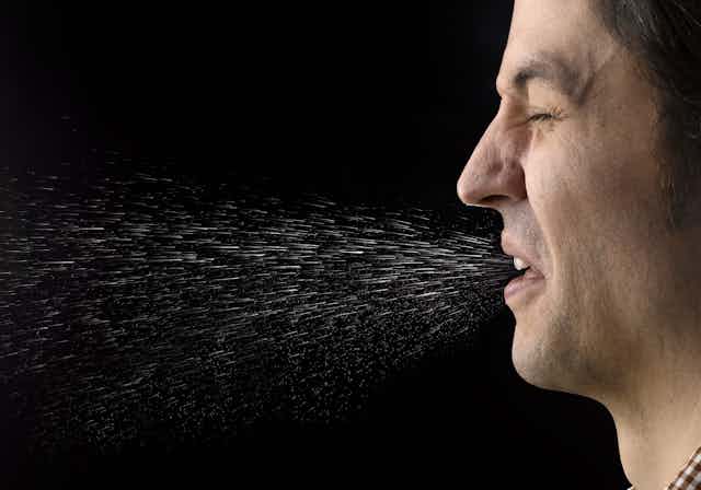 When someone coughs, talks or even breathes, they send tiny respiratory droplets into the surrounding air. The smallest of these droplets can float for hours, and there is strong evidence that they can carry live coronavirus if the person is infected.