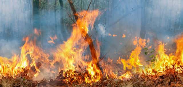 The trees in the Amazon have relatively thin bark, so during a fire, the heat can seriously damage the cells inside the tree, which eventually kills it. Previous research in the Amazon has found that more than 40% of trees die up to three years after a fire. This means that the carbon stored in their trunks, branches and leaves is released into the atmosphere, either while the fire is burning, or later as the dead trees decompose.