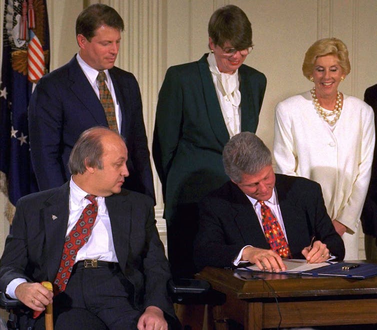 But at the end of the Reagan era, as a triumphant US emerged victorious from the Cold War and the 1990s promised a new era of American ascendancy, things looked like they might change. A new president sought to emulate his Democratic forebears in successfully enacting significant gun control measures.