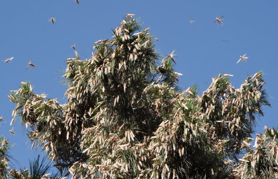 The fate of society rests in part on how humans navigate their complicated relationship with insects – trying to save “good” insects and control “bad” ones. Some insects, like mosquitoes, bite people and make them sick – remember Zika? Now the U.S. mosquito season is already in full swing, with over 10 cases of Dengue fever reported in the Florida Keys this year. Some insects, like bees, are pollinators that help produce our food. Others, like locusts, currently threaten crops in East Africa and Asia, preferring to eat our food instead.
