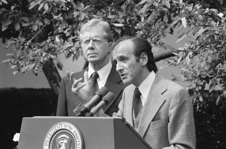 In 1978, Carter’s fraught relations with the Shah weakened the Iranian leader’s hold on power. Popular protest movements mounted, culminating in the Shah’s overthrow in 1979, the Iranian fundamentalist revolution and the American hostage crisis.