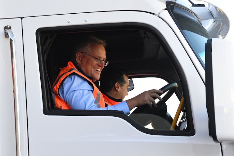 The first is to maximise his visibility when there is good news or an “announceable” to unveil. These appearances are tightly controlled and usually supported by some theatrical prop: an officer in uniform; Morrison himself in a hard hat or some other form of dress-up – a chef’s apron, a medical researcher’s lab coat, a high-vis vest while sitting in the cab of a big truck. The media get plenty of footage but little chance to ask questions.