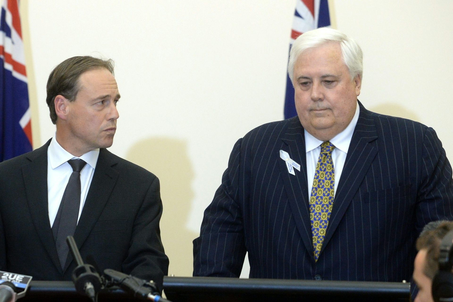 Greg Hunt (left) says he doesn’t want an emissions trading scheme; Clive Palmer says he does. But Hunt’s Direct Action plan might ultimately take us there anyway.