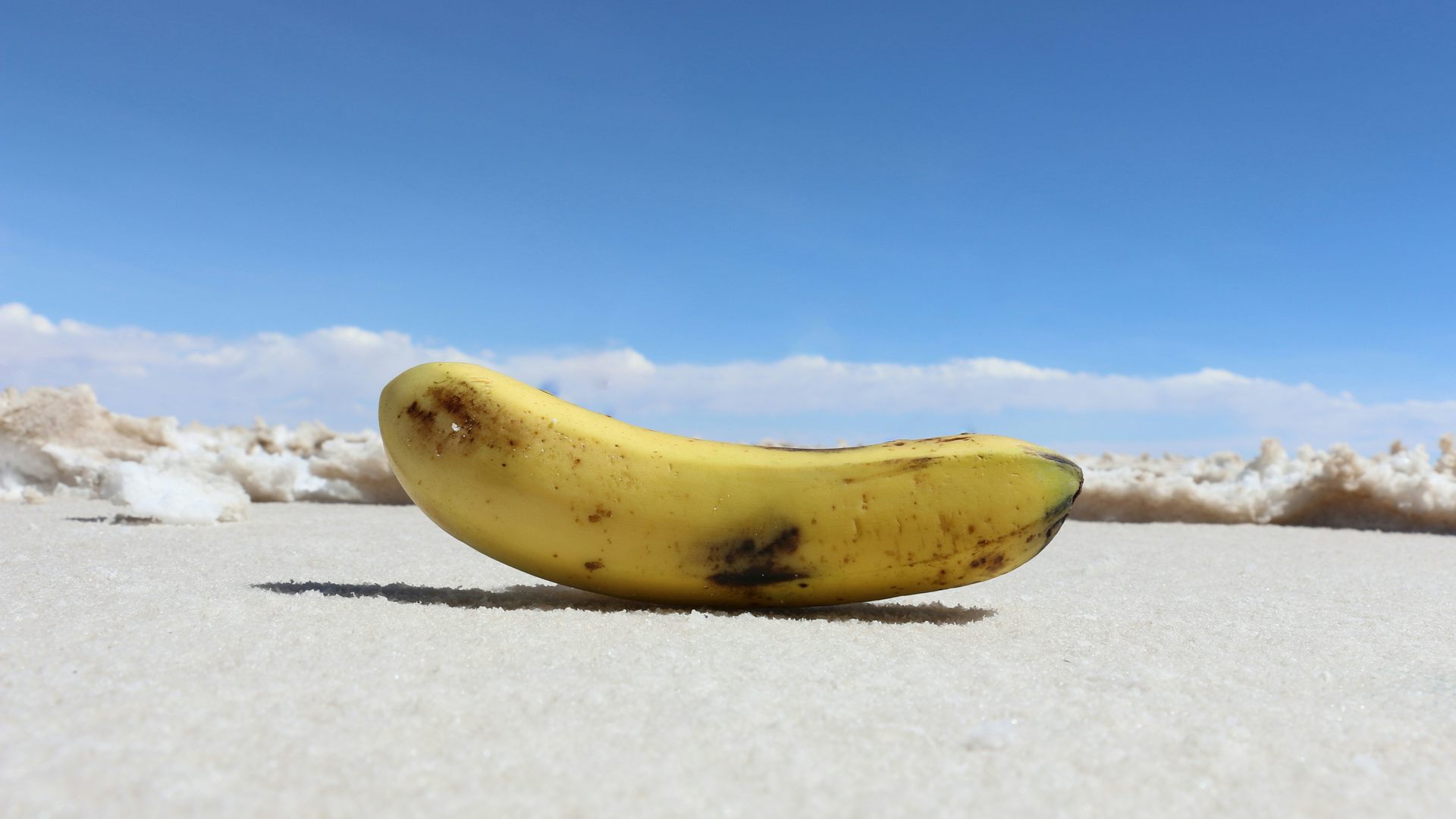 A banana on the salt lake plain at Salar de Uyuni, Bolivia, hints at themes of genetics, food and human journeys in three books recommended by fly scientist Thomas Merritt.