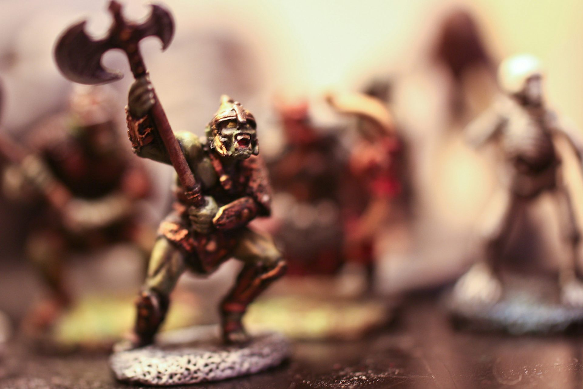 A miniature orc from the popular role-playing game Dungeons & Dragons.
