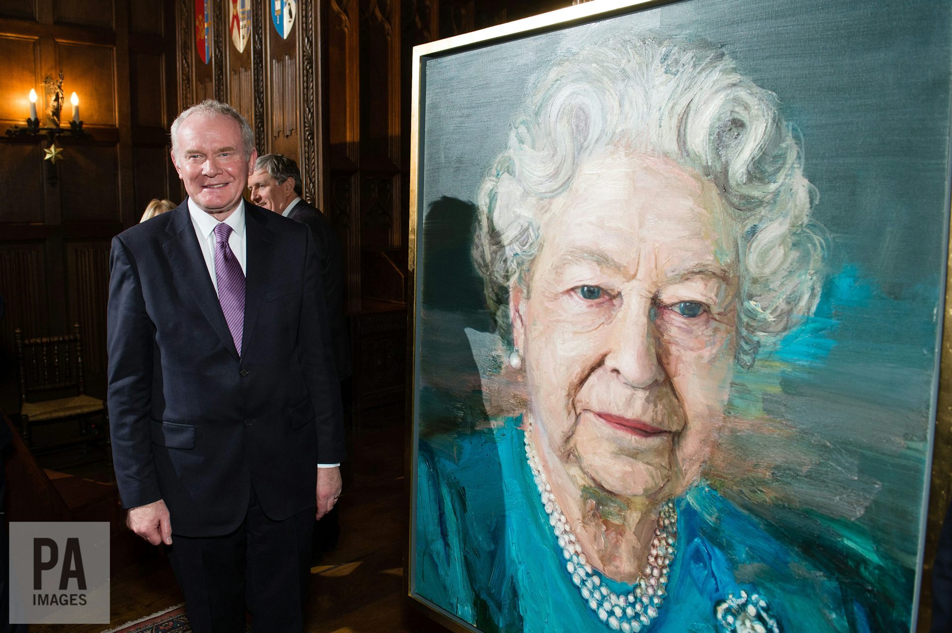 McGuinness attends the unveiling of a portrait of the Queen in 2016.