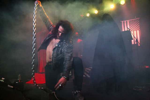 Blackmore eventually appeared from beneath a hood and took to a podium to deliver what can only be described as a “satanic jeremiad.” She warned that Christian theocrats were taking over America and that those present – atheists, satanists, fans of heavy metal and punk music – were allowing it to happen: “There’s too much apathy and not enough resistance!”