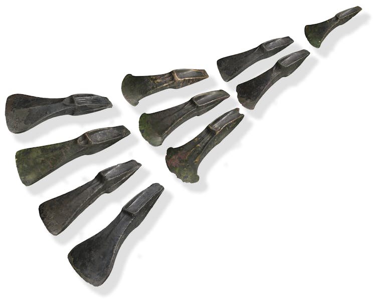 From the Middle Bronze Age onwards, all over Europe, bronze was being recycled. We know this because archaeologists have analysed the metal composition of hundreds of objects, showing the depletion of certain elements, as a result of frequent recycling. In addition, “old” metal was traded. A shipwreck discovered off the coast of Dover carried a large amount of French bronze objects dated to 1100BC, destined to be recycled in the UK.