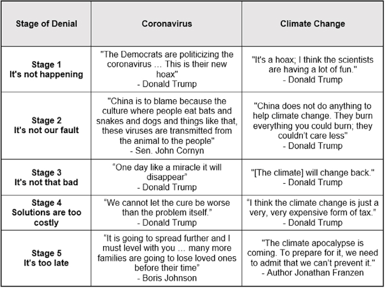 It is therefore unsurprising that the rhetorical techniques that are deployed against the seriousness of climate change are similar to those used to mismanage the COVID-19 crisis.