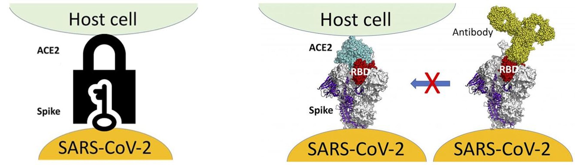 The spike protein has an important function: it has to unlock access to the host cell, but it is also the target of neutralizing antibodies, which the virus has to prevent from latching onto the protein in order to evade the immune system. Both these functions rely on the same part of the protein: the receptor binding domain (RBD).