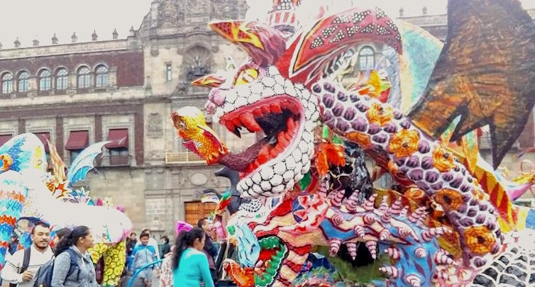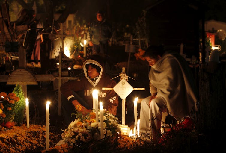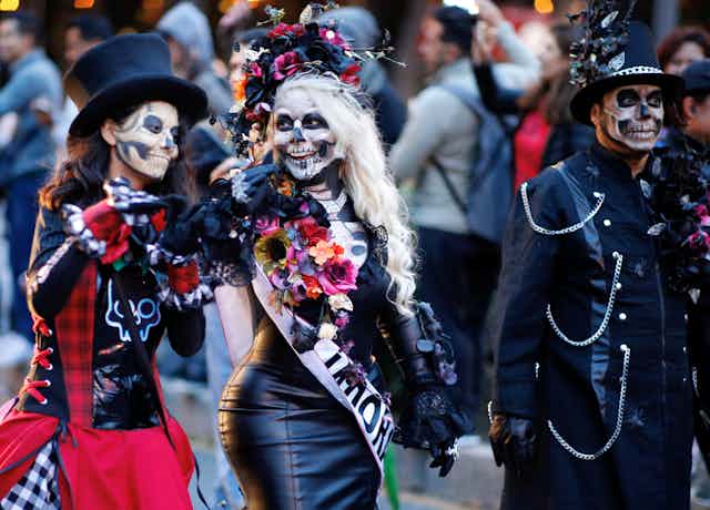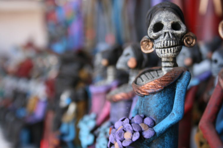 Contemporary Day of the Dead rituals were featured prominently in the 2017 Disney/Pixar film “Coco.” These include homemade sugar skulls, decorated home altars, the fantastical spirit animals called alebrijes and images of convivial calaveras – skeletons – enjoying the afterlife in their finest regalia.