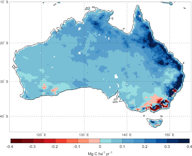 On average, Australia is “greener” today than it was two decades ago. This is despite ongoing land clearing, urbanisation and the recent droughts in some parts of the country.