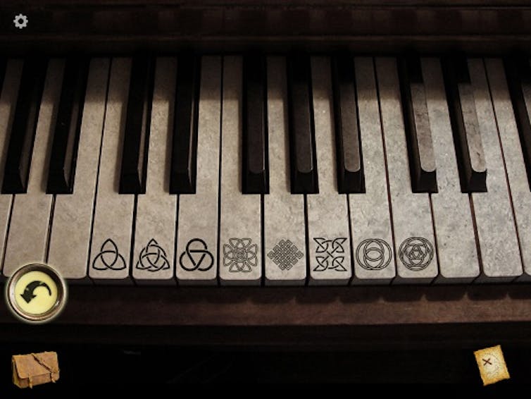 A lot of game designers have realized this and provide visual clues in addition to or instead of aural clues. In the above example, since the xylophone keys are different colors, the designer could have provided a color pattern clue in addition to the sounds. Similarly, in The Hunt for the Lost Treasure, while players must enter a musical sequence on a piano, the piano keys have patterns on them; the clue is available in terms of patterns, not just sounds.