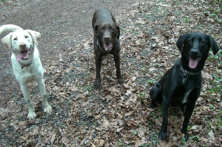 In the Labrador case – it seems that dogs with particular genes are golden, while others with different genes are black or brown. Thus there is variation in genes between the three coloured groups.