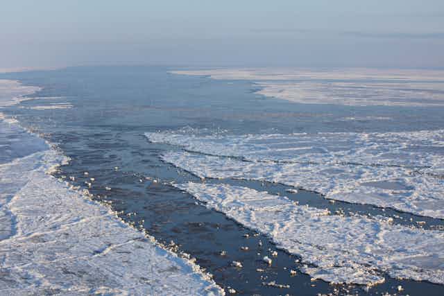 During years with low seasonal sea ice concentrations (when there’s more heat loss from more exposed open water), the north-south differences in atmospheric temperatures across the Barents Sea are reduced. These conditions have been linked to wintertime cyclones travelling further south into western Europe, instead of their tendency to move eastwards towards Siberia, as well as more frequent cold winter extremes at middle latitudes.