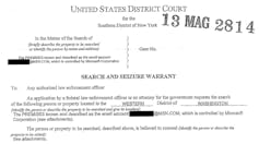 On the first page of the warrant, the cloud-based email account is clearly treated as “premises” controlled by Microsoft, not by the email account’s owner: