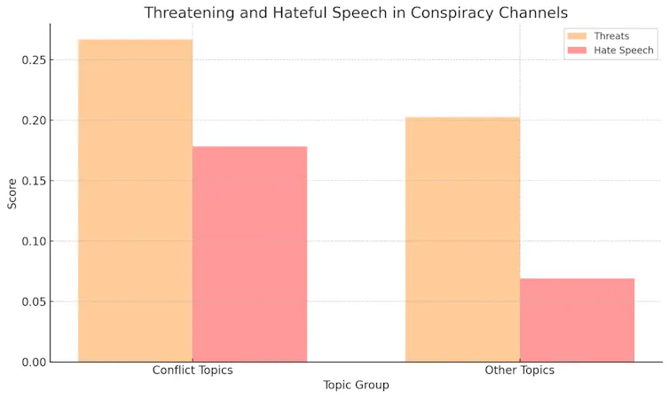 At least that’s what I found in my analysis of some 12,000 comments posted on Telegram channels in the immediate aftermath of Hamas’ October 7 attack on Israel. Not surprisingly, I also found language about the war was more likely to be threatening or hateful than language used in comments about other topics.
