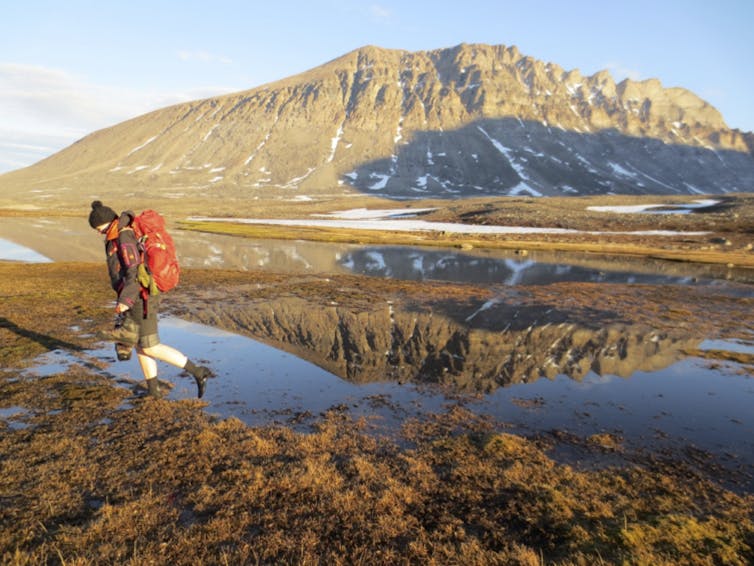 Despite its icy image, the margins of Greenland are actually quite boggy, complete with swarms of mosquitoes. This is the “active layer”, made up of peaty soil and sediment up to two metres thick, which temporarily thaws during the summer. The underlying permafrost, which can reach depths of 100m, remains permanently frozen.