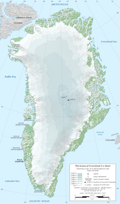 Greenland is an important cog in the global climate system. The ice sheet which covers 80% of the island reflects so much of the sun’s energy back into space that it moderates temperatures through what is known as the “albedo effect”. And since it occupies a strategic position in the North Atlantic, its meltwater tempers ocean circulation patterns.