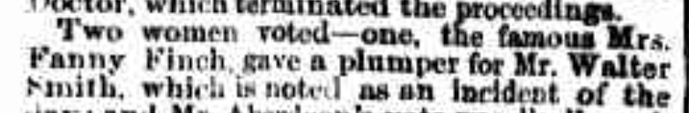 That afternoon, however, the two assessors of the day disallowed both Fanny and the other unknown woman’s votes. Their reasons were cited as: “they (the women) had no right to vote”. Further details were not divulged.