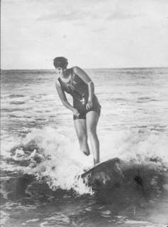Correction: An earlier version of this article contained an image mistakenly labelled as one of Duke Kahanamoku and Isabel Letham. The photo, which was supplied to us and captioned by a picture researcher at the ABC, was in fact of Kahanamoku with Viola Cady Krahn. Thank you to our readers for pointing out this error.