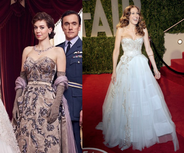 The series had a myriad of sources for inspiration to model its costumes on: photographic evidence; authentic garments surviving from the era; and special access to both Elizabeth’s wedding and coronation dresses, as provided by her favoured designer, Norman Hartnell.