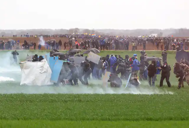 Even more spectacular were protests against proposed water reservoirs in Sainte-Soline, western France, in March. Up to 30,000 protesters showed their opposition to the project, arguing that the dams, intended to collect fresh water during wet seasons to provide for increasingly drier periods, were inefficient due to water evaporation, and ultimately prioritised the interests of large agribusiness over locals’ rights.