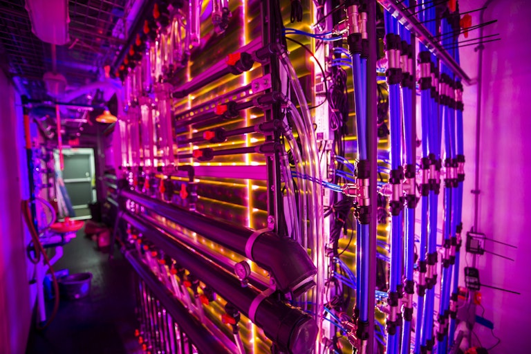 This novel method, trialled in Iceland’s Hellisheidi geothermal park, swaps sunlight with LED light, fresh water with saltier “brackish” water, and ambient air with concentrated carbon dioxide, controlling their concentrations in innovative modules called photo-bioreactors. Think of them as nuclear reactors, except with concentrated CO2 and light as the inputs and organic material as the output.