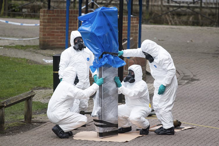 Similarly, in the case of the recent Novichok poisoning, the UK government has spent millions of pounds removing potentially contaminated grass, soil, paving stones and other items from areas around Salisbury. This is why Novichok is most likely a persistent nerve agent, which may last for days or weeks in the environment before being diluted through natural weathering or neutralised by the action of sunlight, bacteria or water.