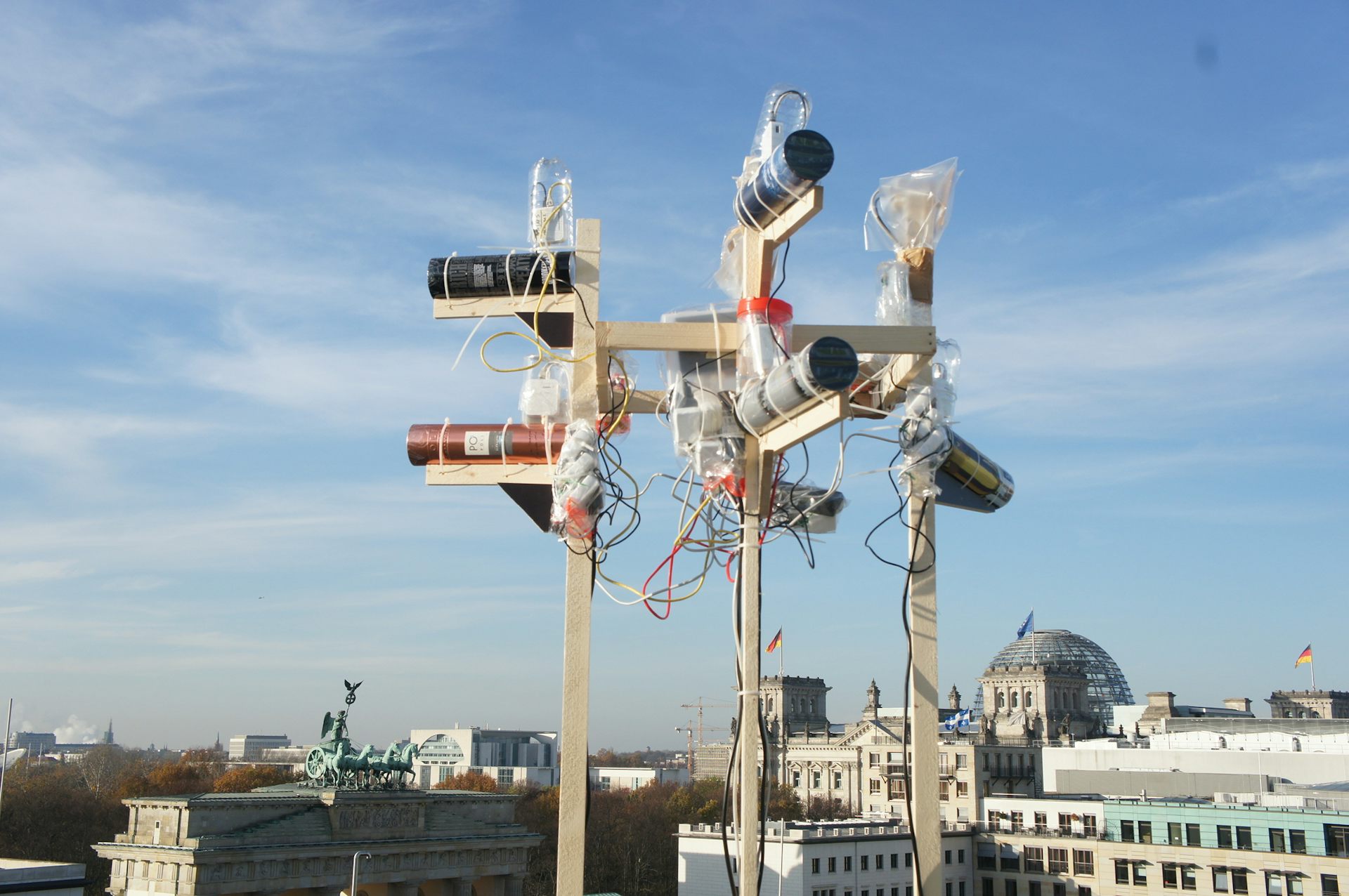 Artists and activists have been experimenting with different types of networks, such as LibraryBox, an e-book sharing network, and the “Can you hear me?” installation of temporary antennas pointing to the US embassy in Berlin, broadcasting anonymous messages from nearby pedestrians.