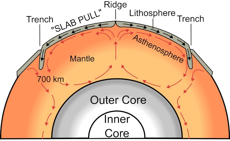 Heating from the core is thought to produce plumes welling up from just above the core-mantle boundary, which might help drive the flow within the mantle. The suggestion from our findings is that the core contribution to the surface heat flow is lower than implied from other studies and that subduction in the ocean, when one tectonic plate goes under another down into the mantle, are much more important in driving mantle convention than the heat rising from the core.