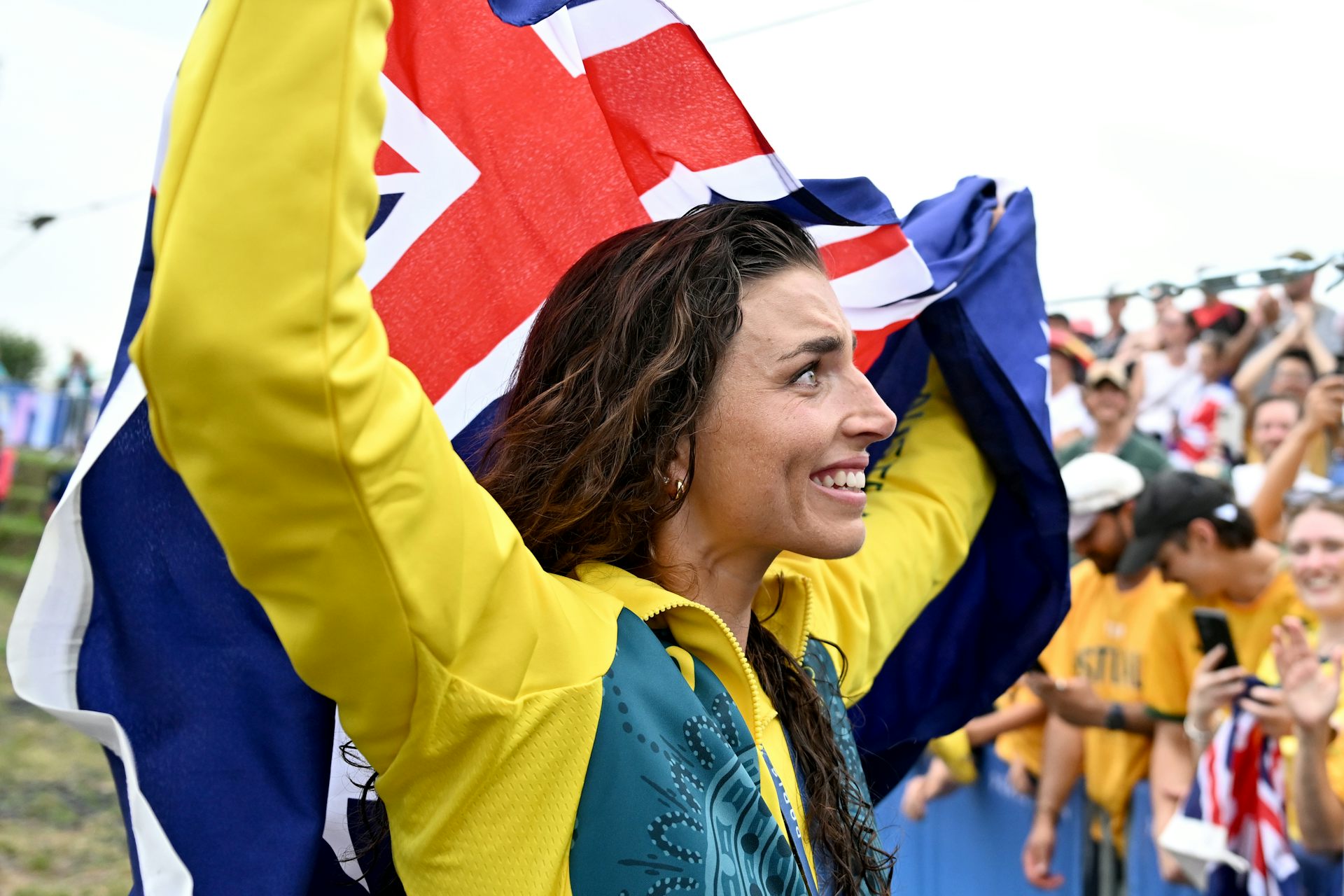 Australian canoeist Jessica Fox reacts after winning gold.