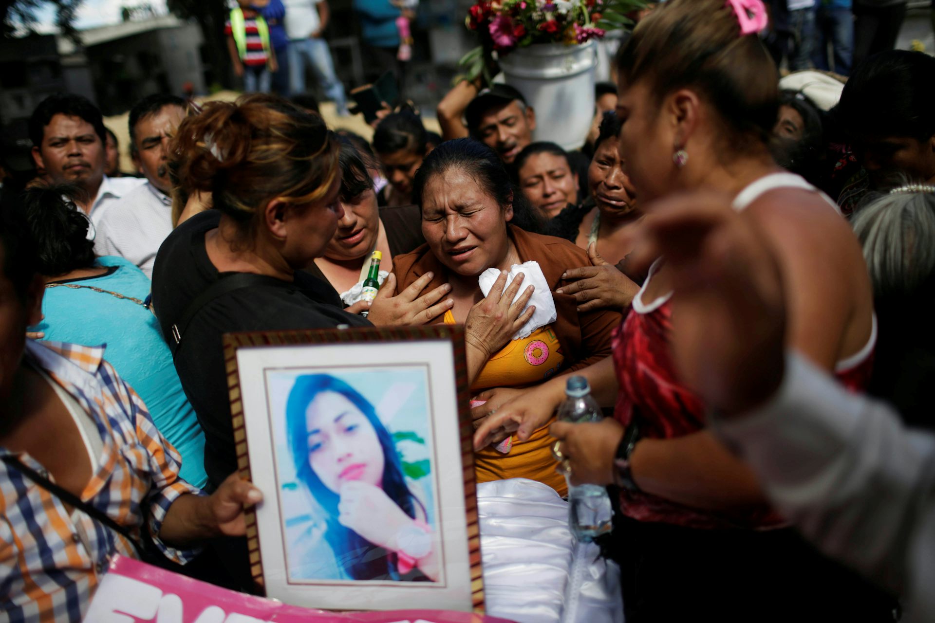 A woman cries during the funeral of a victim of a fire at a children’s shelter in Guatemala.
