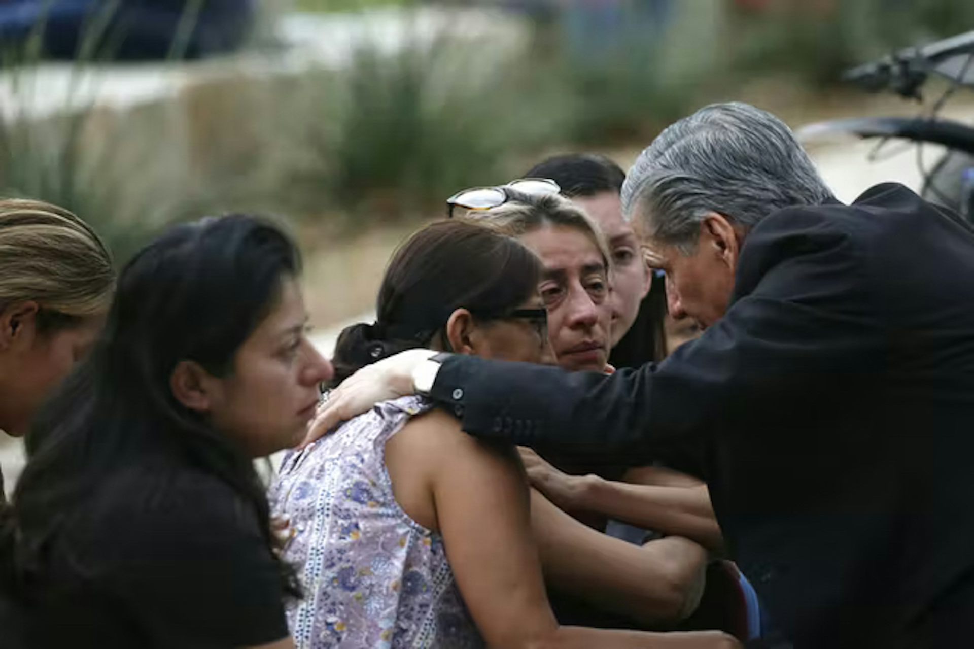 The archbishop of San Antonio, Gustavo Garcia-Siller, comforts families following a deadly school shooting at a school in Uvalde, Texas, on May 24, 2022.