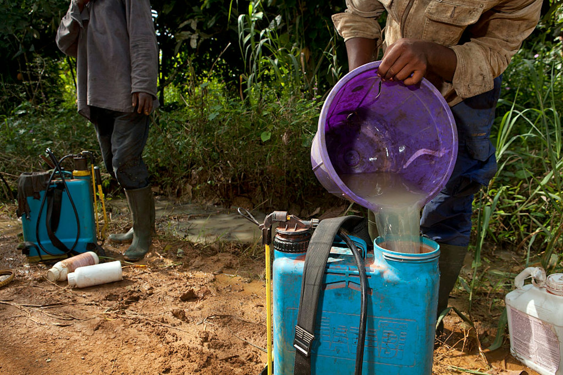An insecticide being mixed.