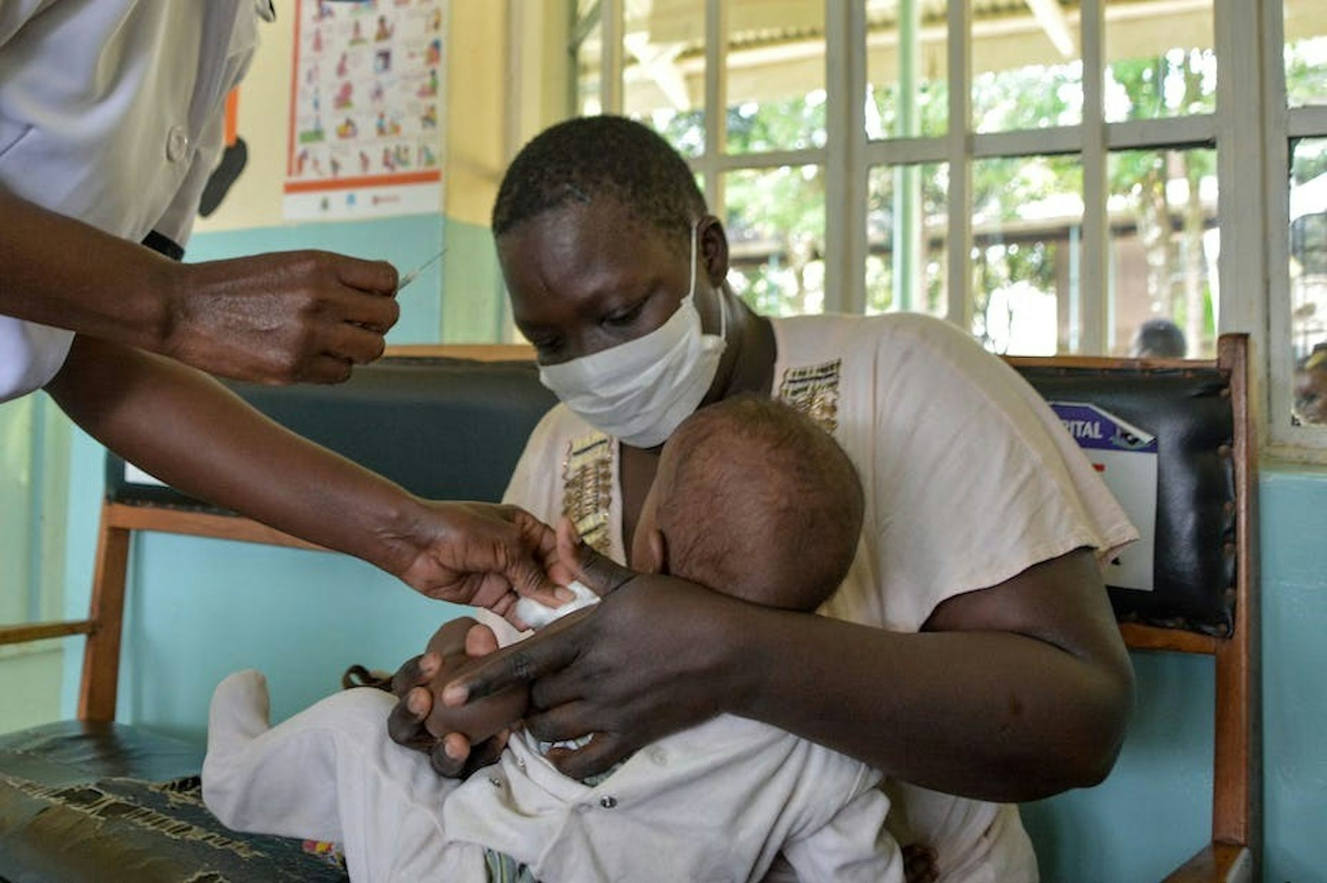 Seorang pekerja kesehatan menyiapkan sebuah vaksin malaria di Yala, Kenya.