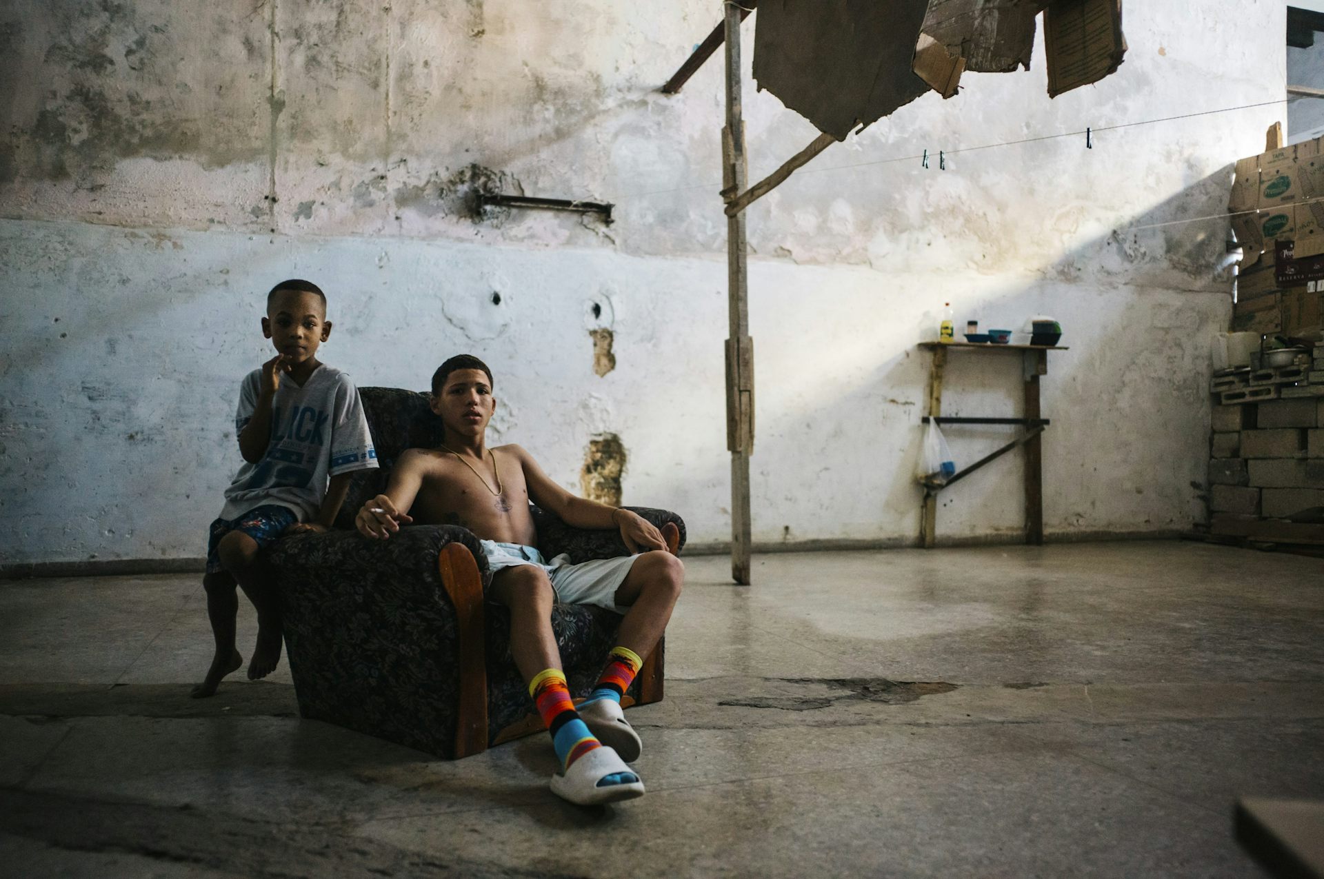Boys in an abandoned building in Centro Habana, a neighbourhood of Havana, Cuba, in December 2022.