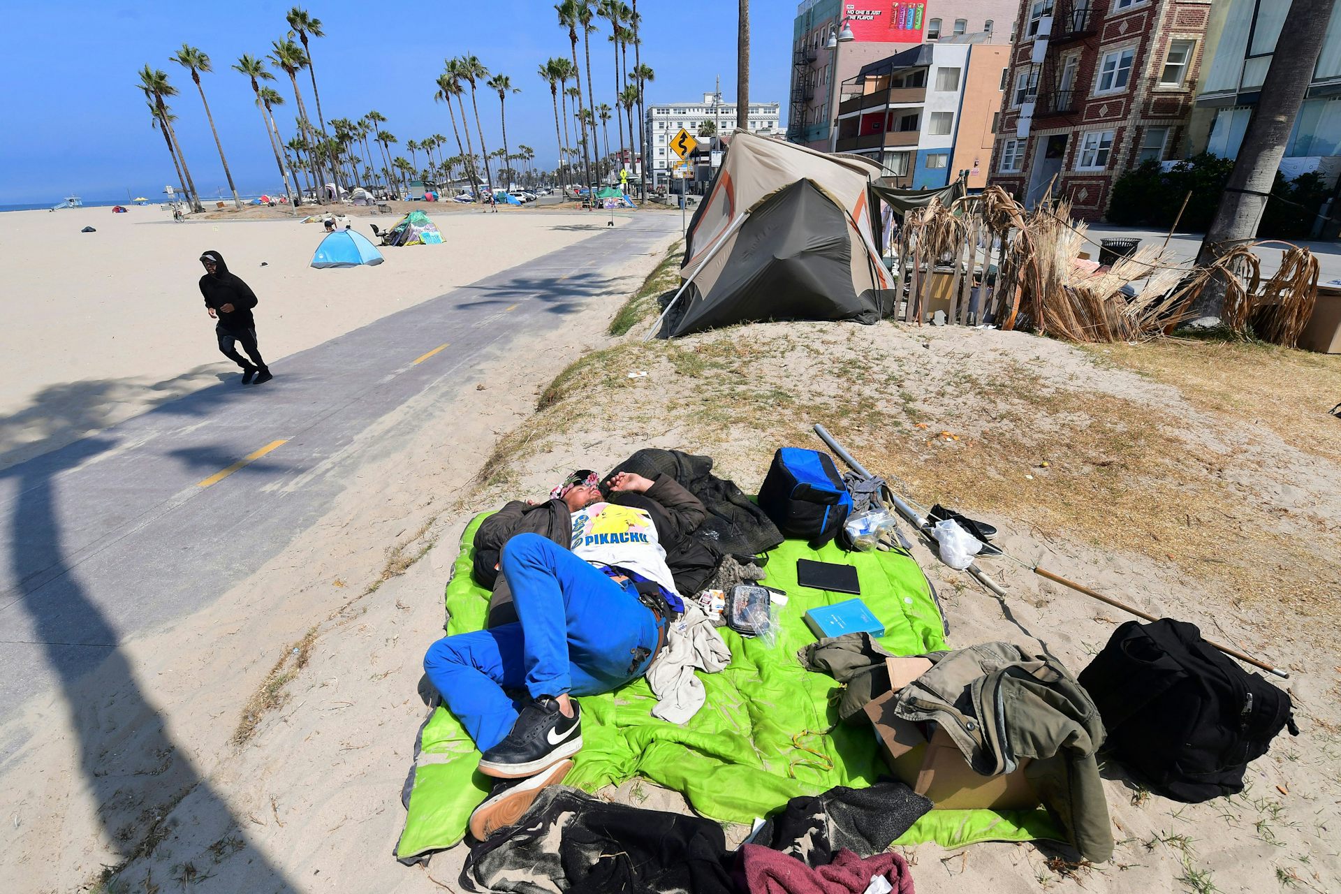 Views on how to deal with the homeless encampments that have cropped up across California in recent years, such as this one in Venice Beach, Los Angeles, in June 2021, don’t fall neatly along party lines.
