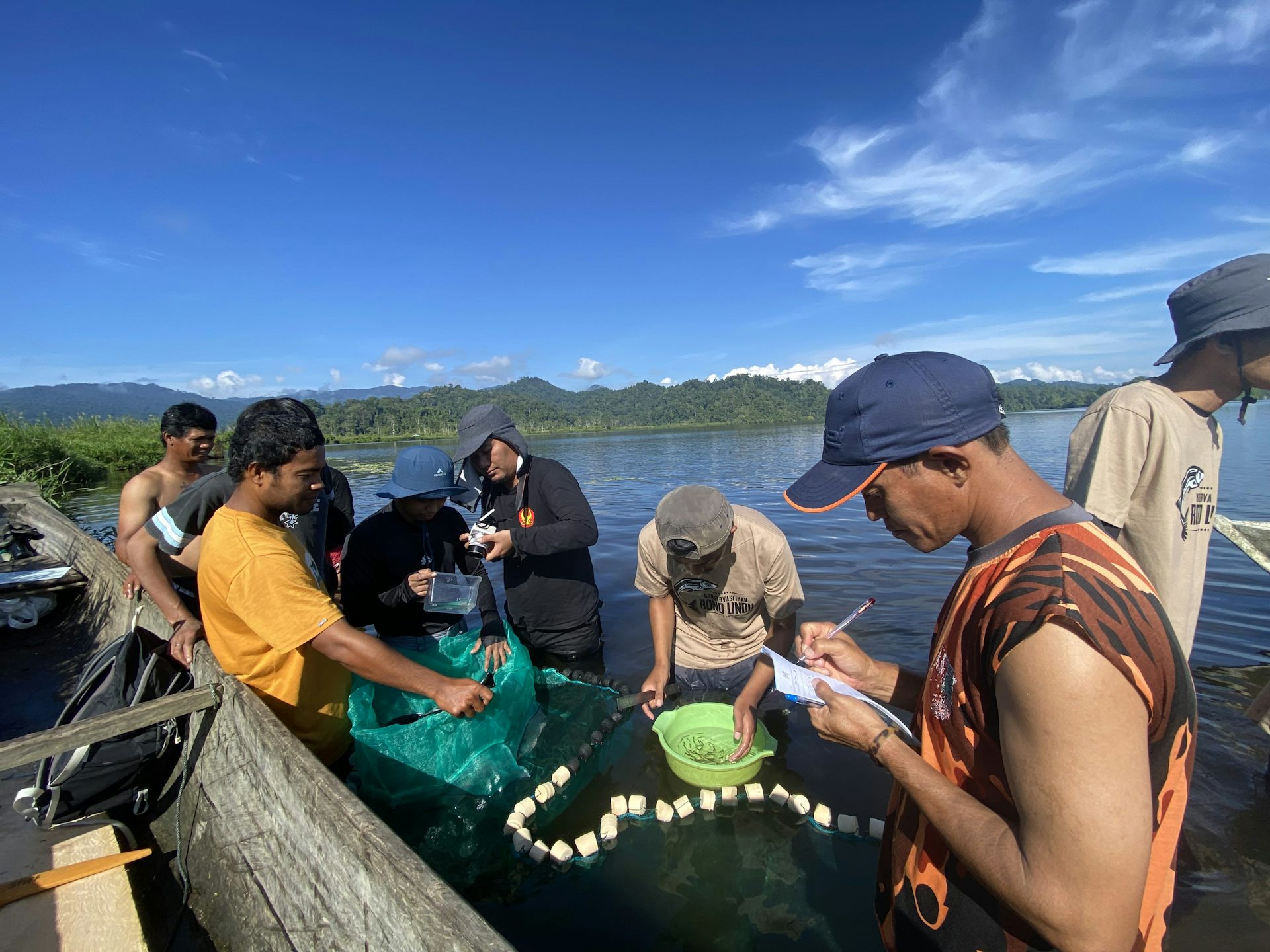 Herjayanto, dosen di Universitas Sultan Ageng Tirtayasa, bersama tim ilmuwan Yayasan Celebica bersama nelayan meneliti populasi Ikan Rono Lindu (Xenopoecilus sarasinorum).