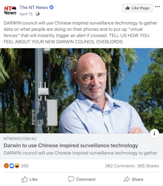 Recently there have been reports on how smart city plans in Darwin draw inspiration from the Chinese social credit surveillance system.