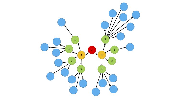 At the start of the coronavirus outbreak, R in the UK was around three. If every infected person infected exactly three people, the epidemic would have spread as in the figure below.