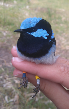 We gave fairy-wrens different coloured leg bands, allowing us to follow the same individuals over time.
